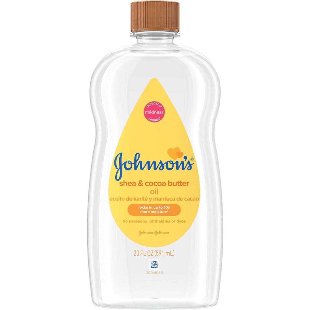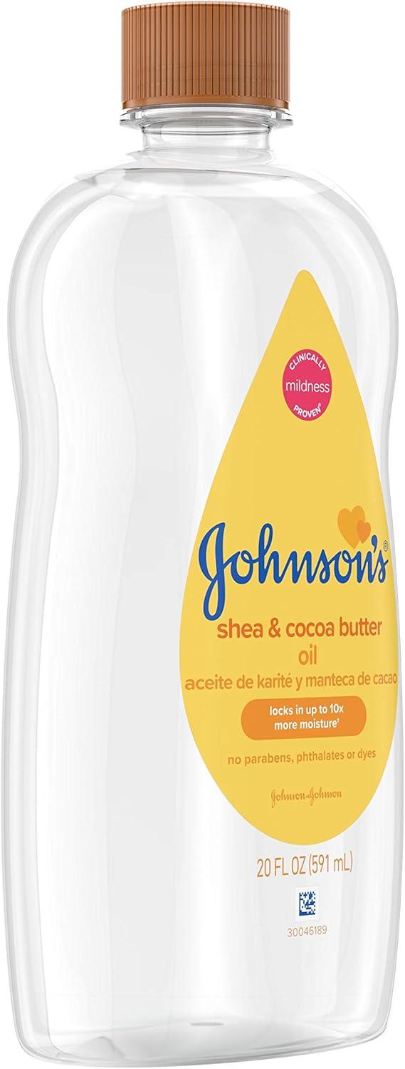 Johnson’s Baby Oil, Mineral Oil Enriched with Shea & Cocoa Butter to Prevent Moisture Loss, Hypoallergenic, 20 fl. oz