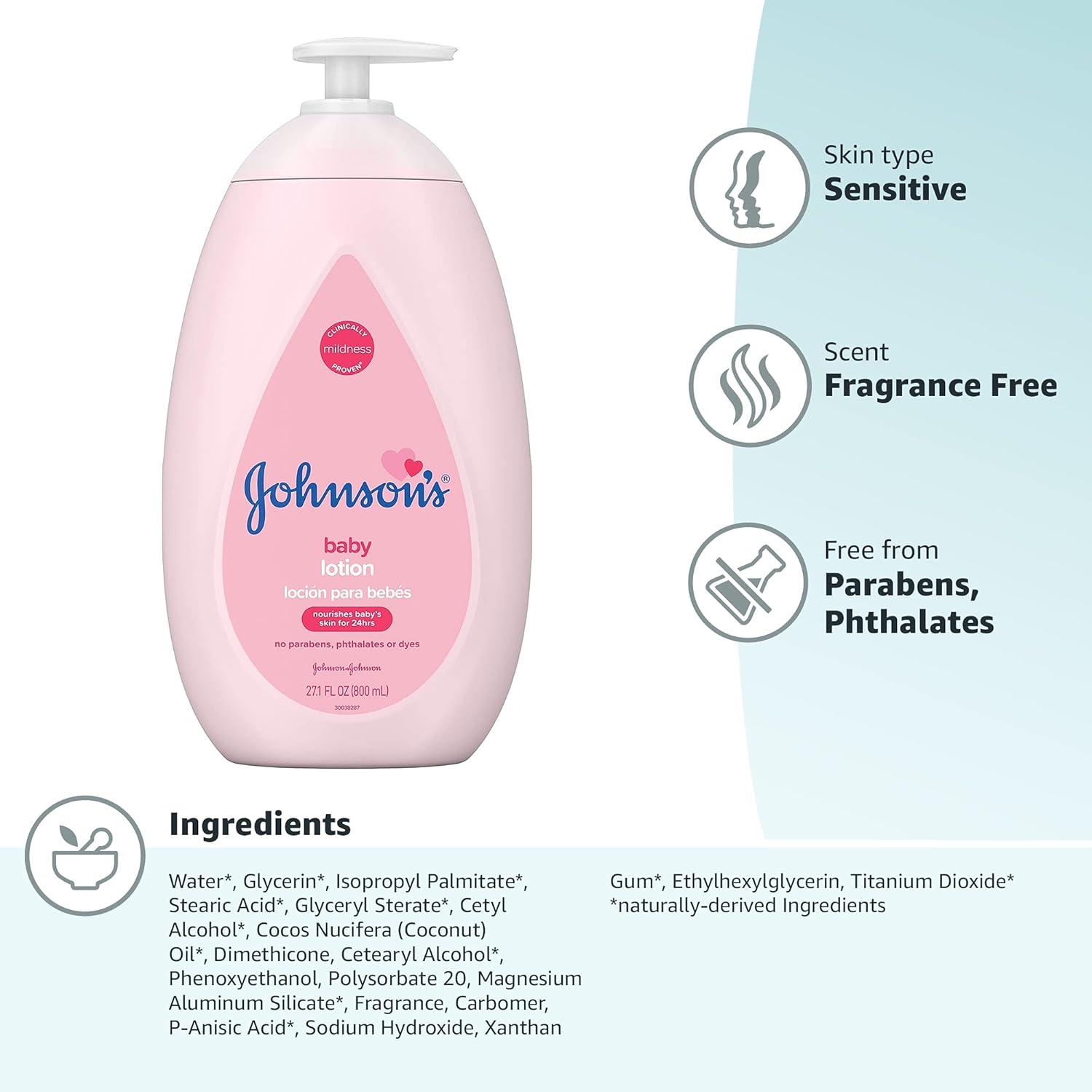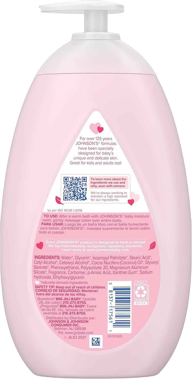 27.1-fluid ounces of Johnson's Mild Baby Moisturizing Pink Lotion with coconut oil hydrates and nourishes your little one's skin and moisturizes to help maintain baby's healthy-looking skin